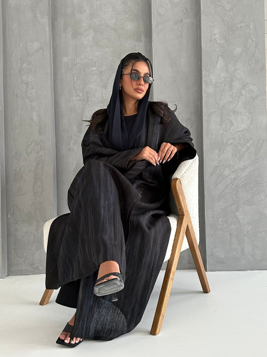 N100 - Black pleated linen abaya