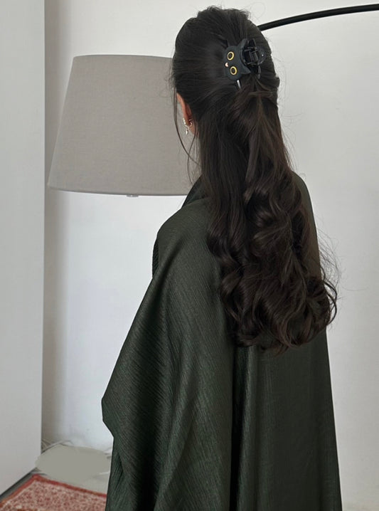 N100 - Black pleated linen abaya