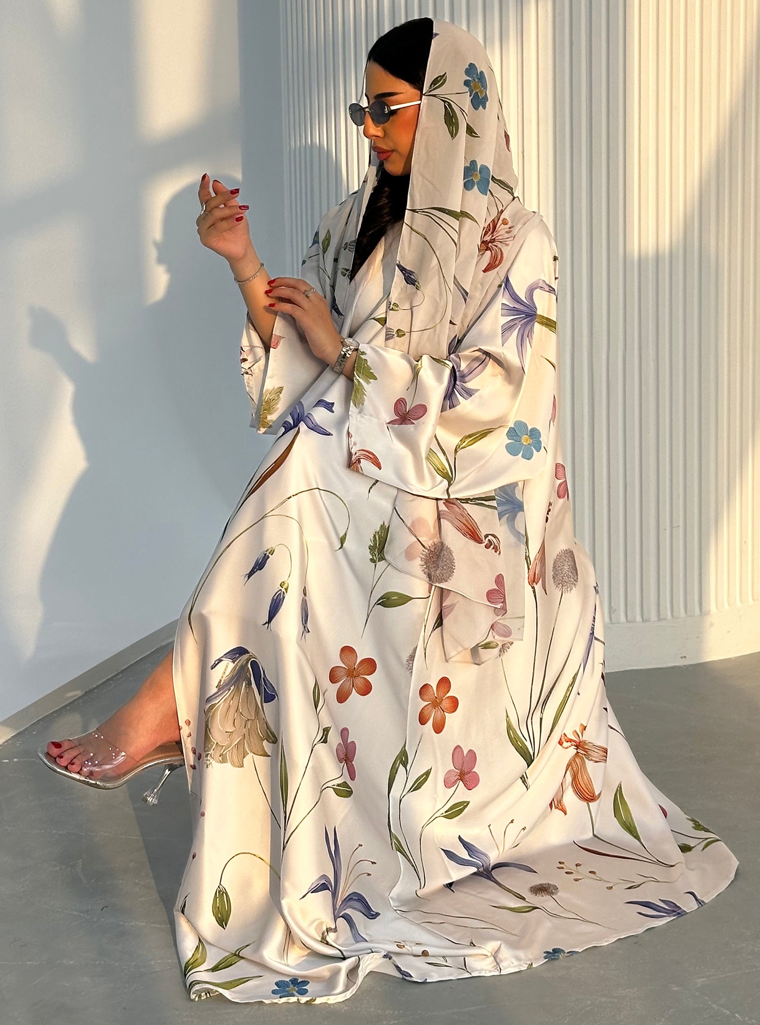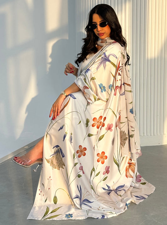 N097 - Floral A cut off white abaya