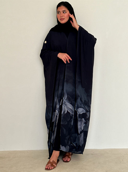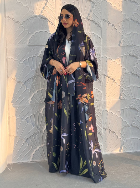 N093 - Floral A cut black abaya