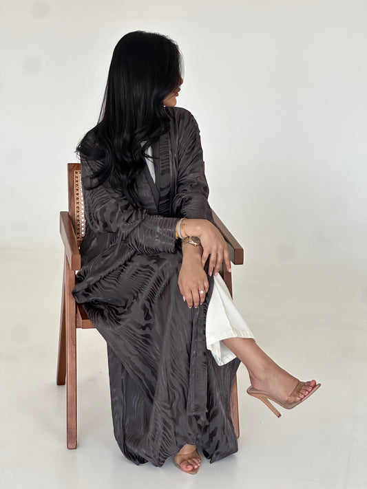 N088 - Black & Grey Print Abaya
