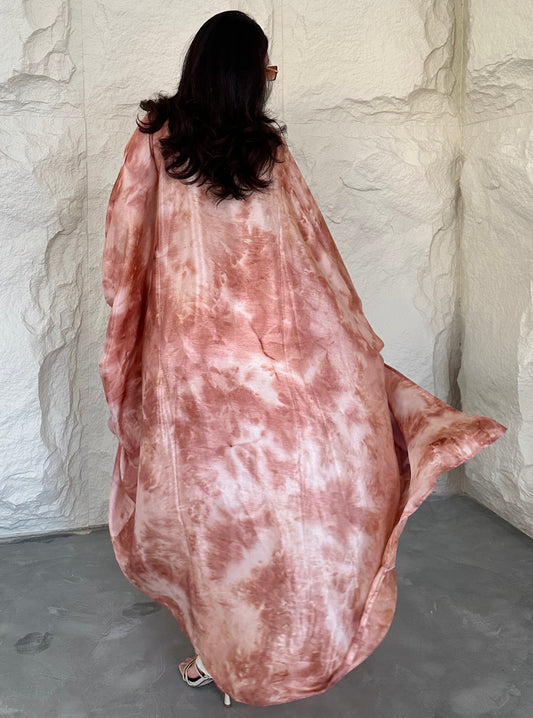 N045 -Peach tie die abaya